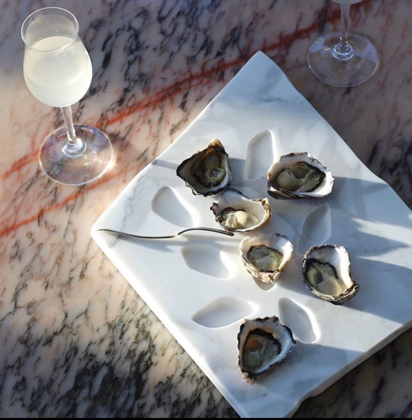 Designed to be lightly chilled before serving oysters. Hand-shaped from natural marble, these oyster platters keep oysters cool while offering a sculptural centrepiece for the table. Each piece is one of a kind, defined by its stone, veining and form.